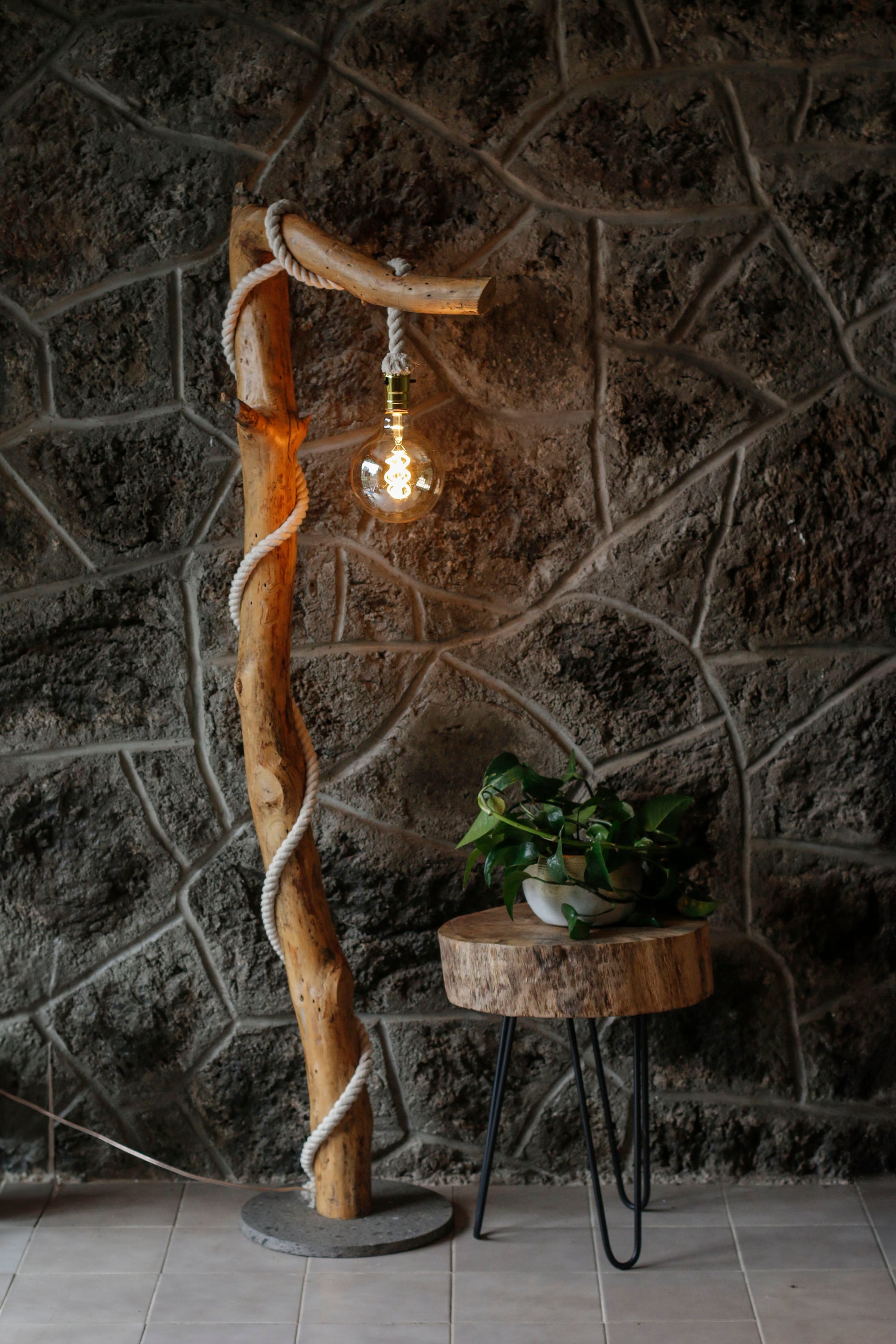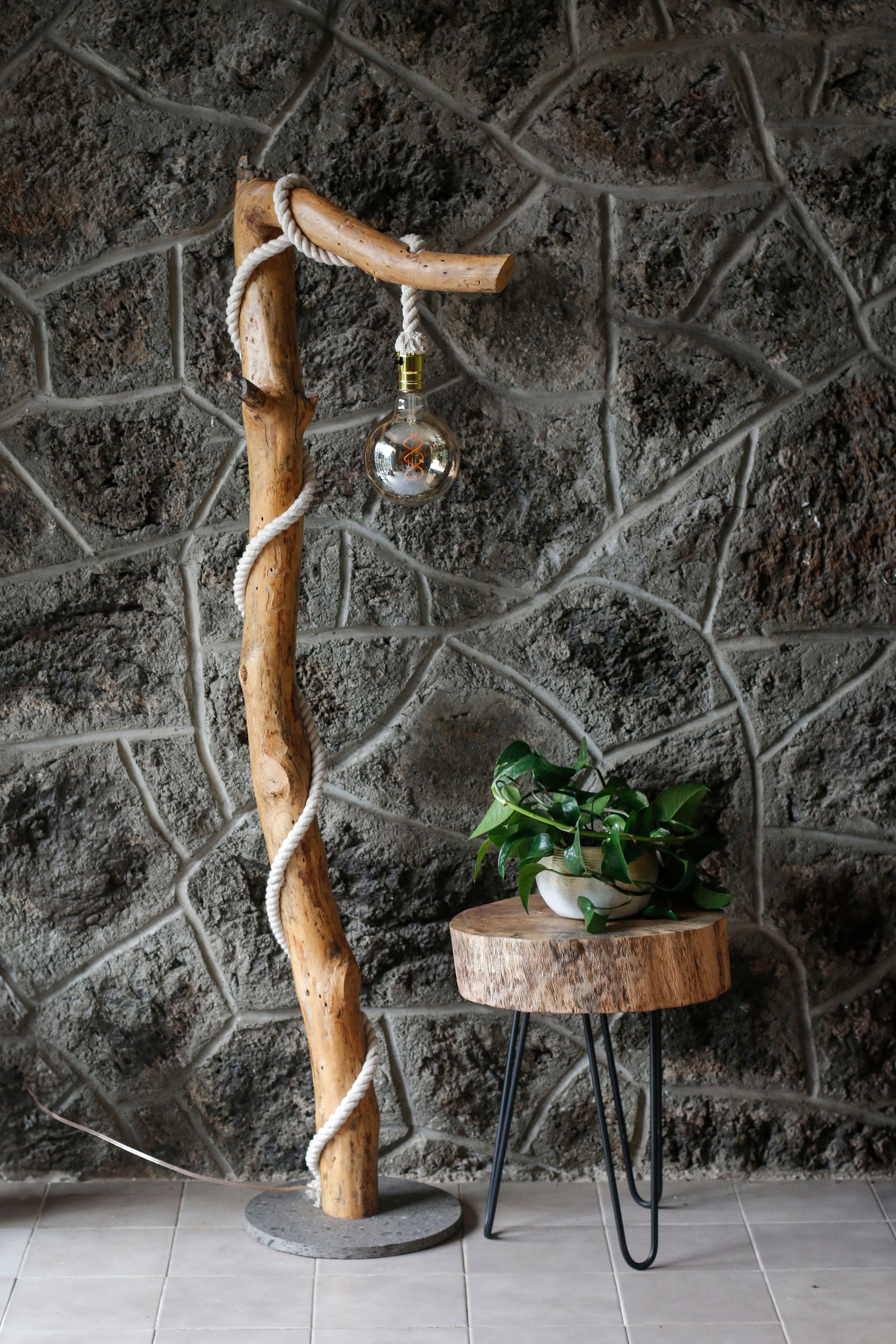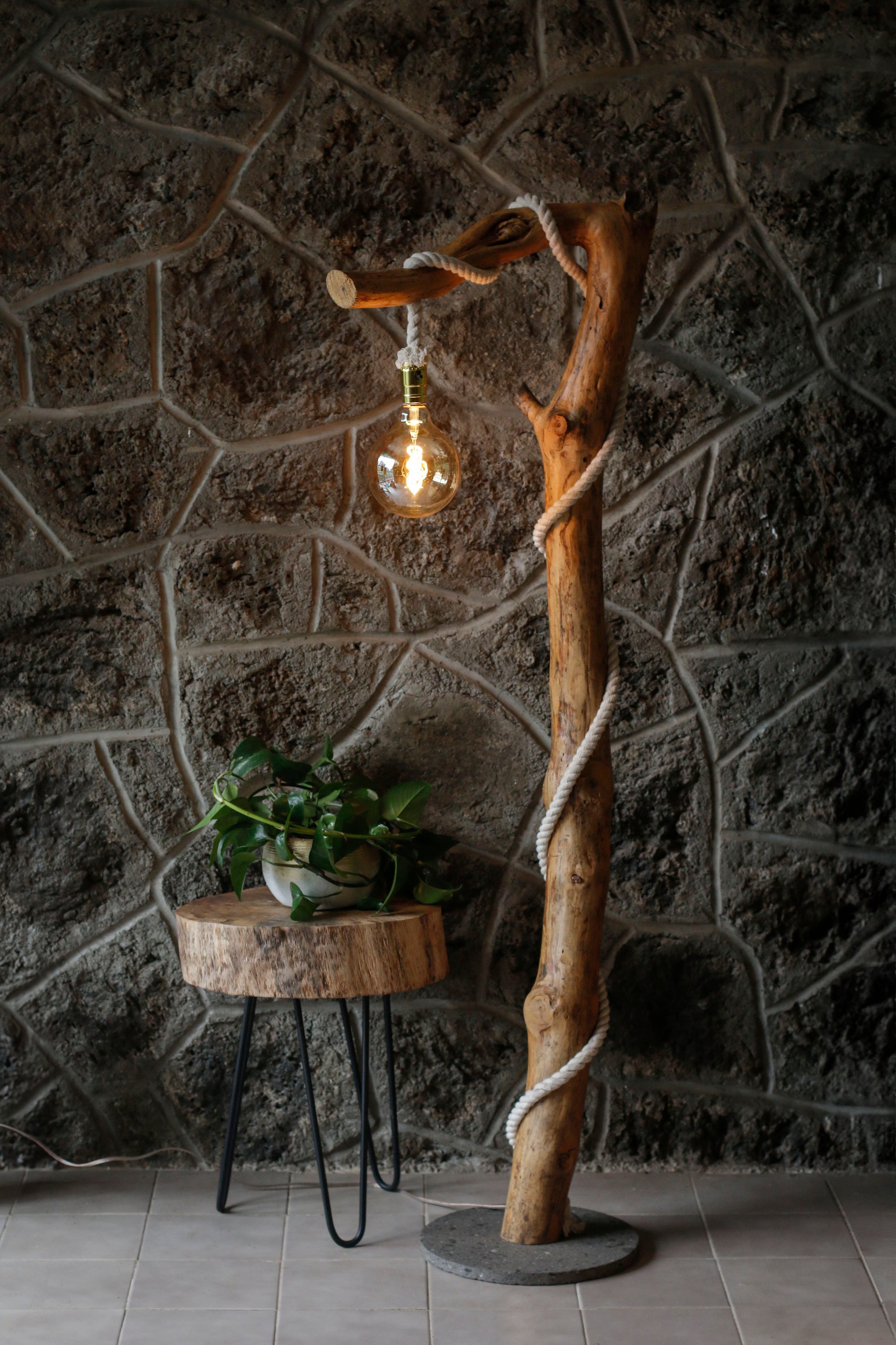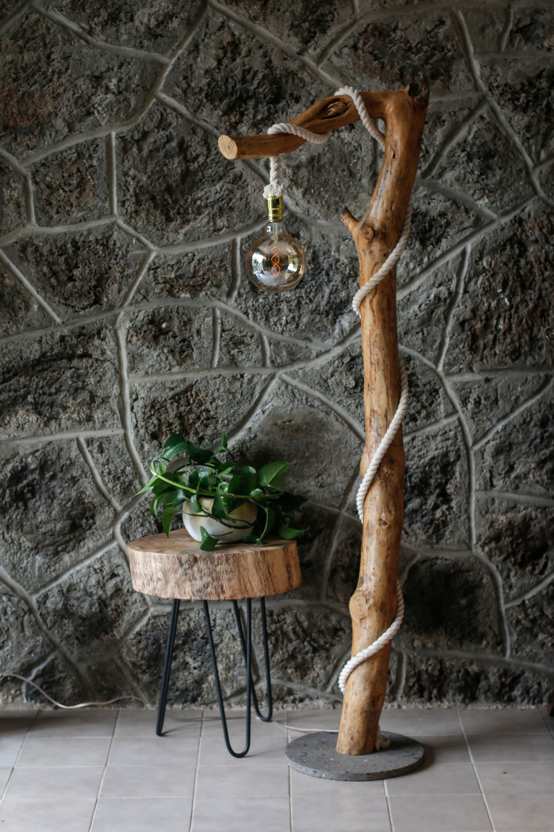 - Lámpara de piso hecha a mano co madera de pino