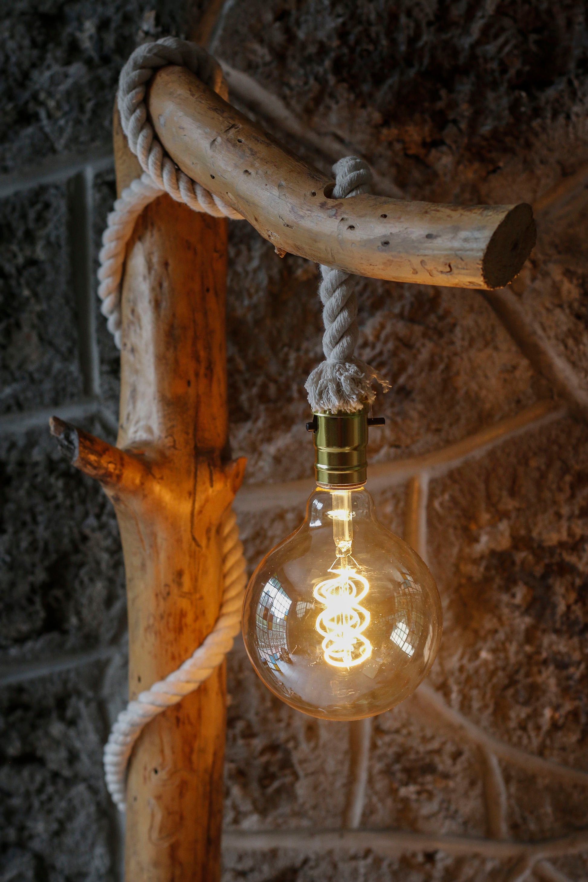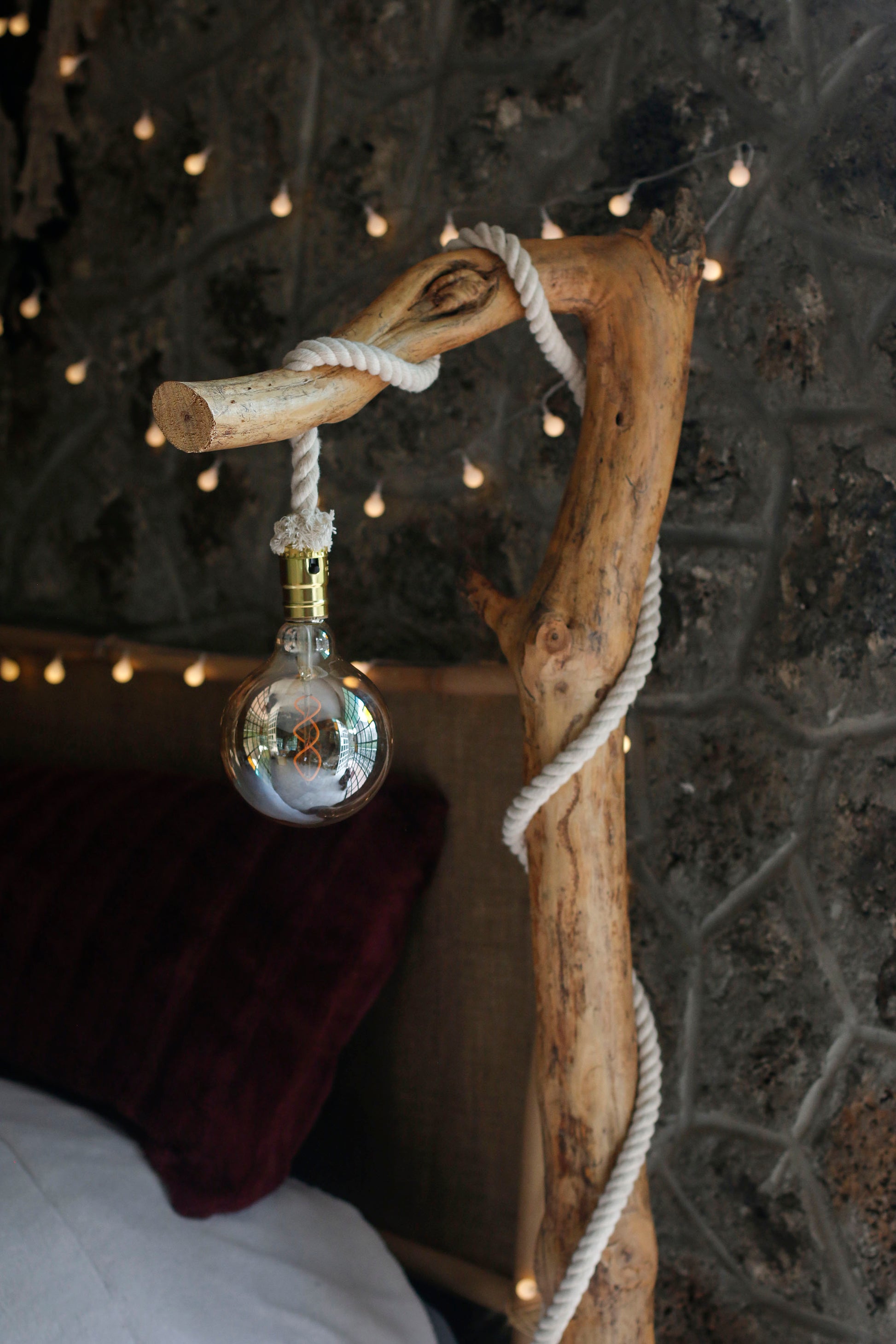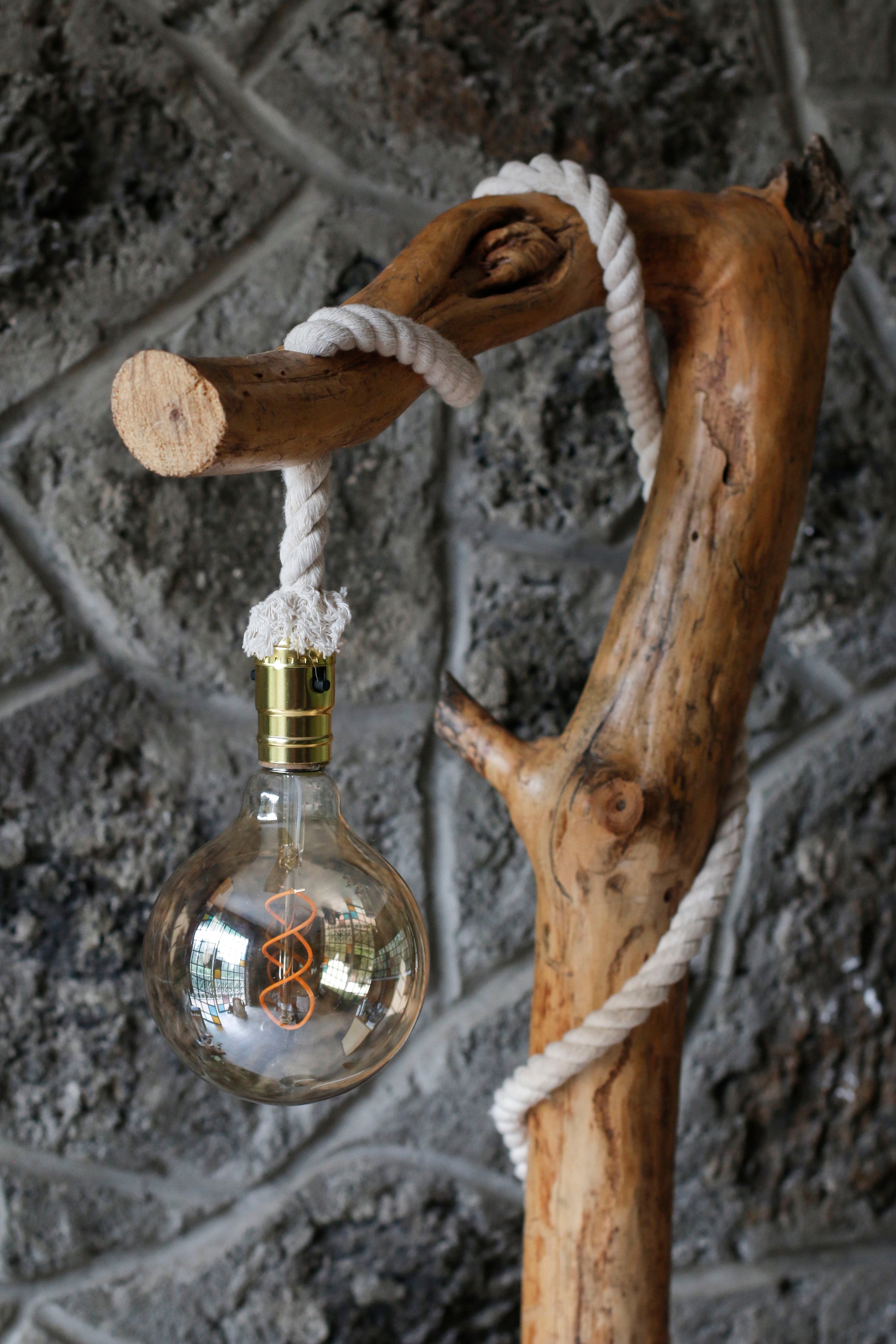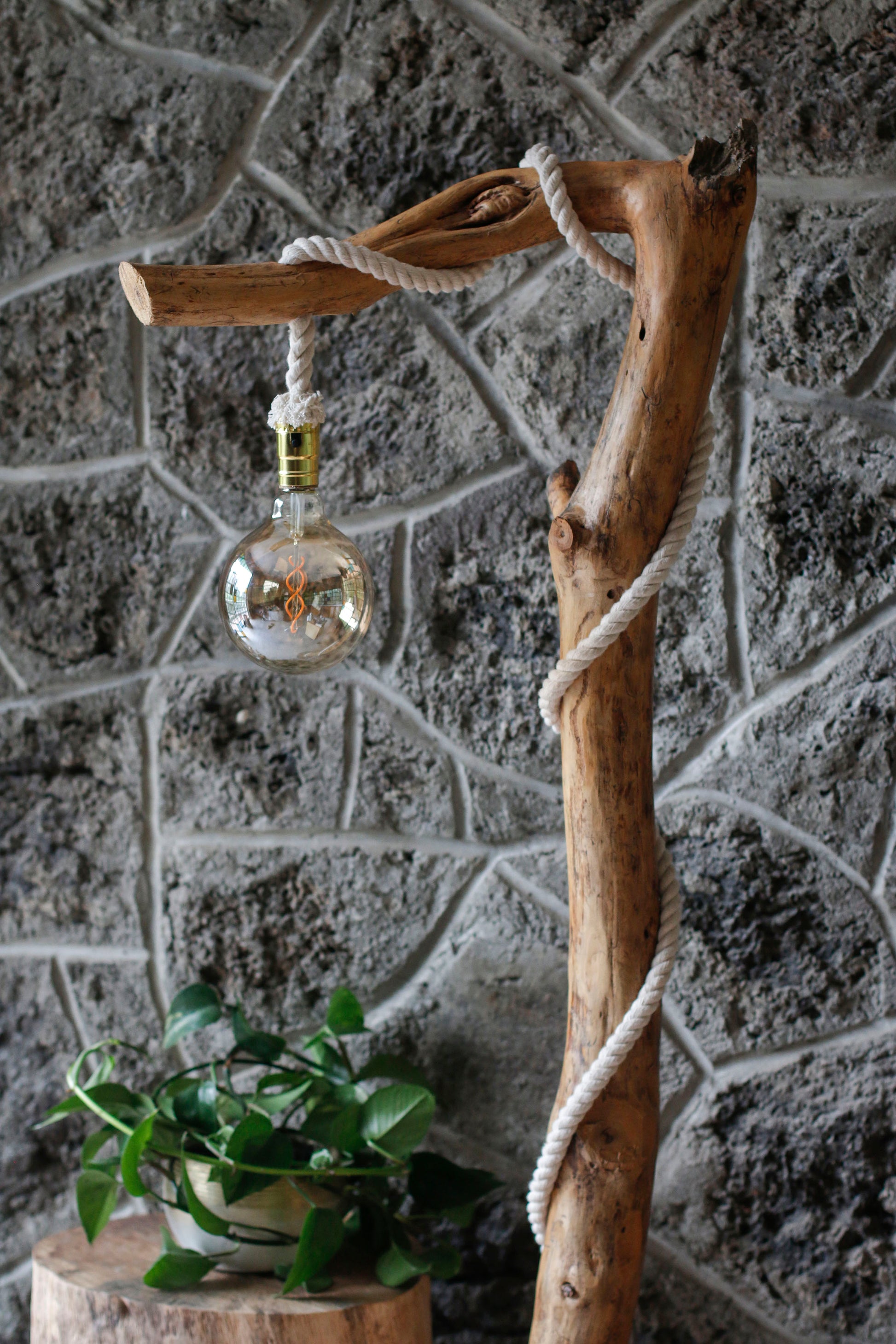 - Lámpara de piso hecha a mano co madera de pino