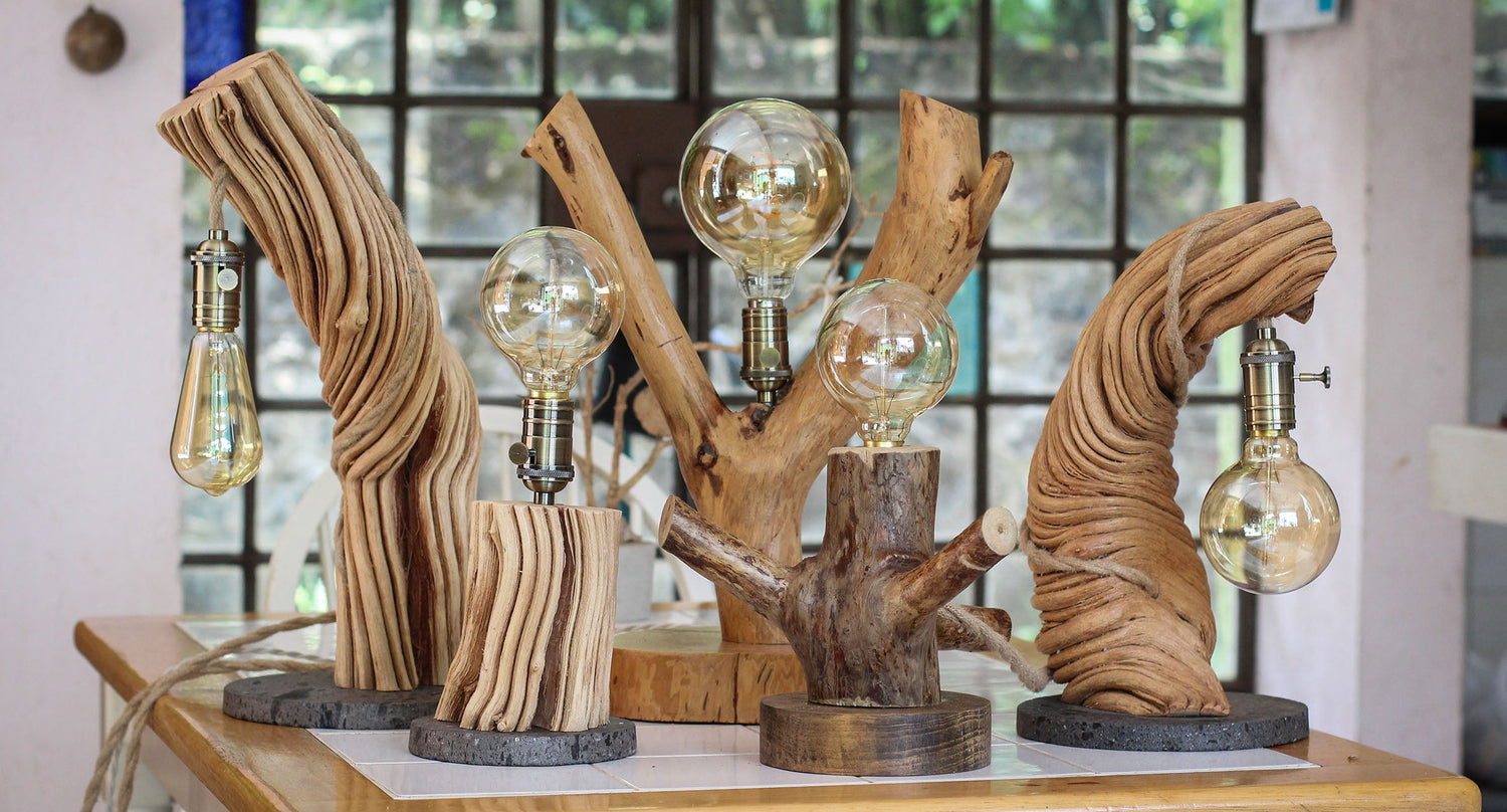 Todas nuestras lámparas son hechas a mano con madera reutilizada, las ramas...