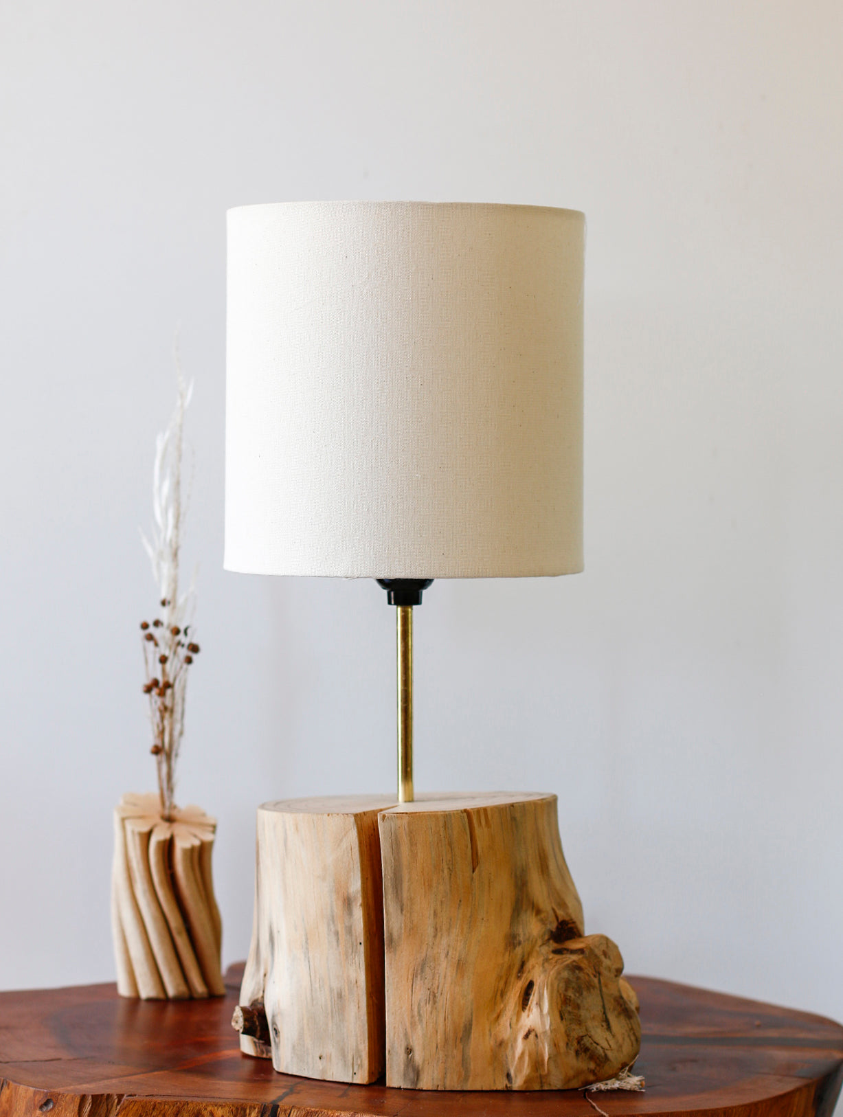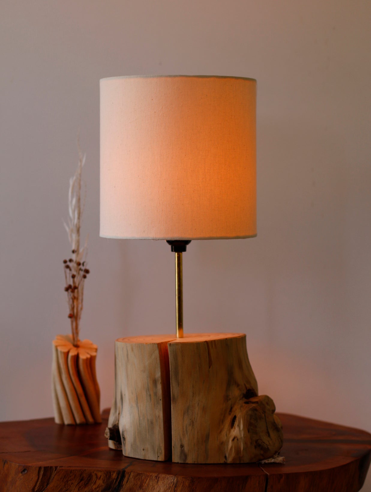 - Lámpara hecha a mano con un tronco de pino.