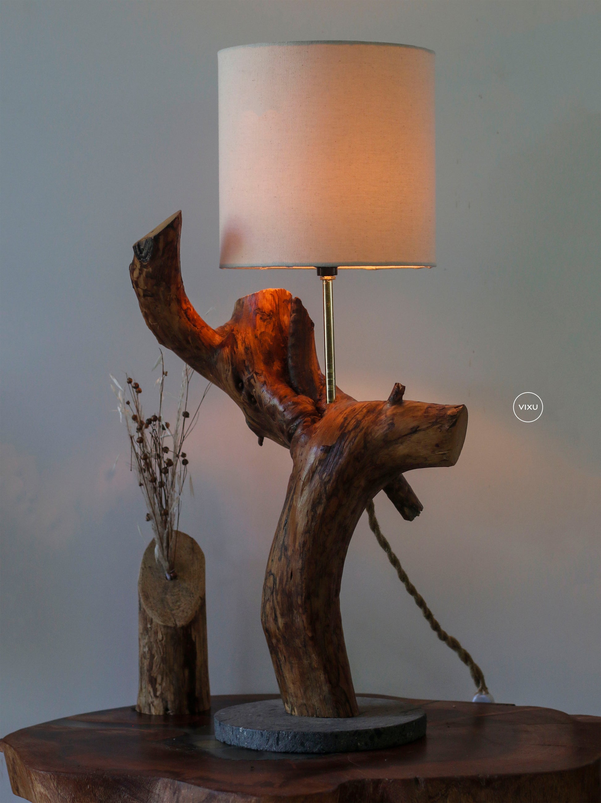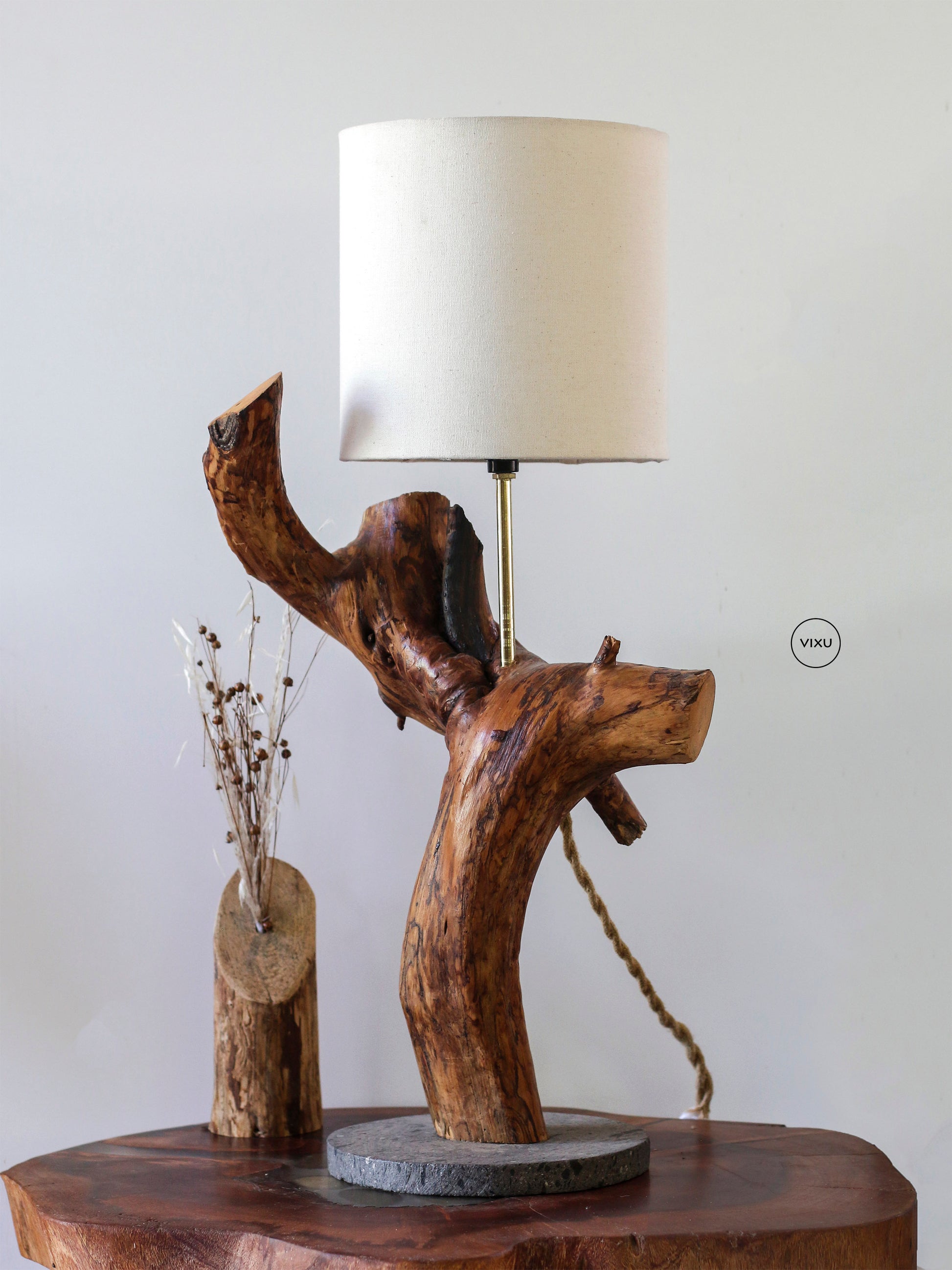 - Base de cantera negra de 20 cm de diámetro con rama de pino lijada y barnizada.